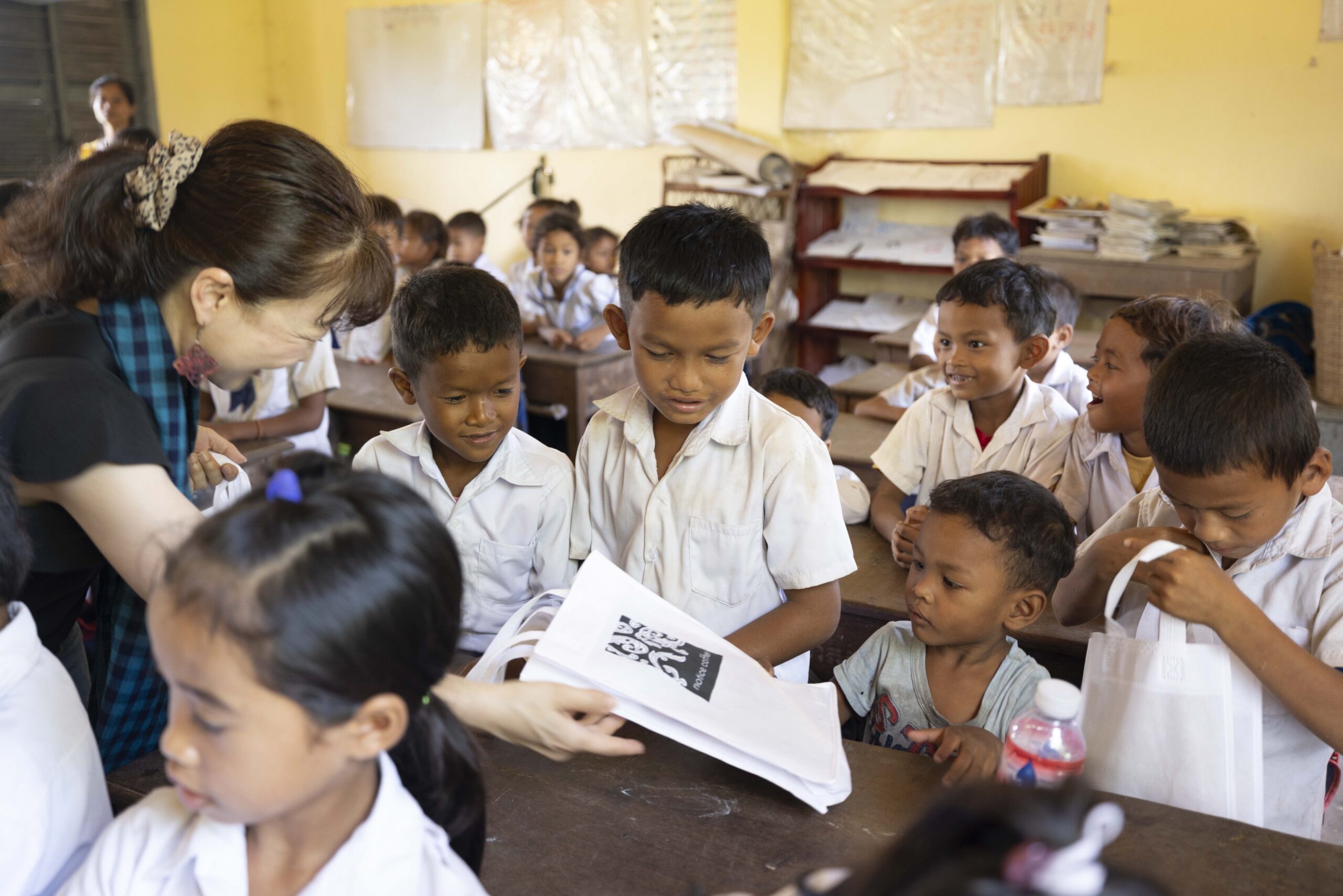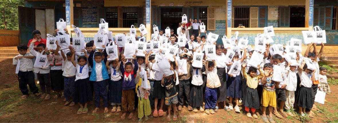 本プランを通じて、カンボジアの子どもたちへ文房具セットを届けています。