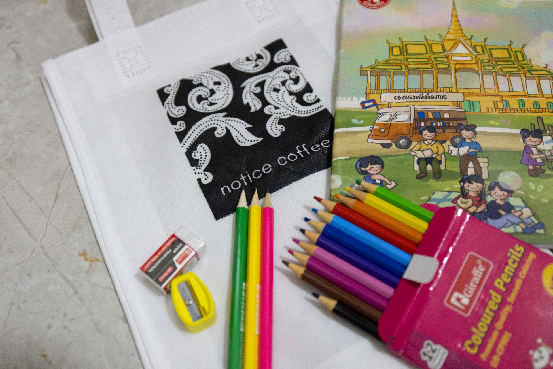 notice coffeeが文房具を用意し、その想いを企業名義でアジアの子どもたちへ届けます。